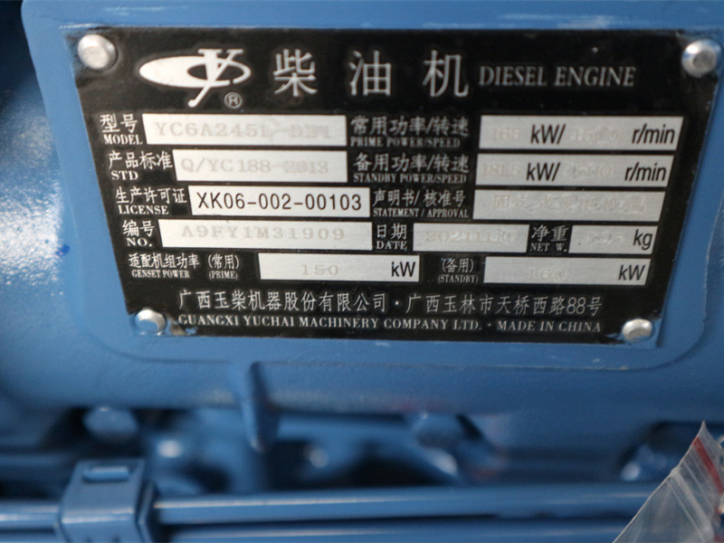 產(chǎn)品名稱:玉柴150kw發(fā)電機(jī)組